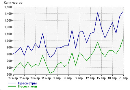Конечно же разговор идет о посещаемости. За вчерашний день 21 апреля 2013 года посещаемость моего Кулинарного блога с вкусными рецептами «Вкуснятина дома» достигла 1041 человека в сутки.
